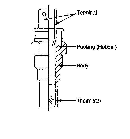 Engine Coolant Temperature Sensor (ECTS) is located in the engine coolant passage of the cylinder head for detecting the engine coolant temperature. The ECTS uses a thermistor whose resistance changes with the temperature. The electrical resistance of the ECTS decreases as the temperature increases, and increases as the temperature decreases. The reference 5 V in the ECM is supplied to the ECTS via a resistor in the ECM.That is, the resistor in the ECM and the thermistor in the ECTS are connected in series. When the resistance value of the thermistor in the ECTS changes according to the engine coolant temperature, the output voltage also changes. During cold engine operation the ECM increases the fuel injection duration and controls the ignition timing using the information