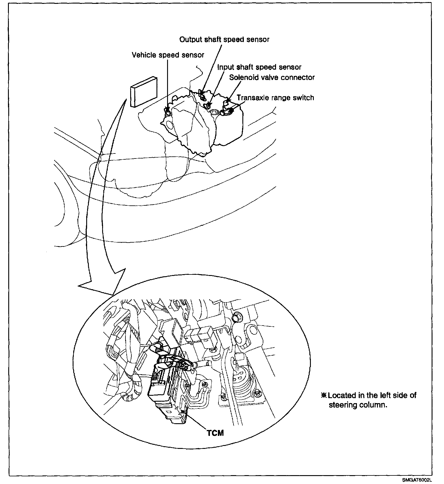 The TCM(PCM) is located on the intake manifold in the engine room.