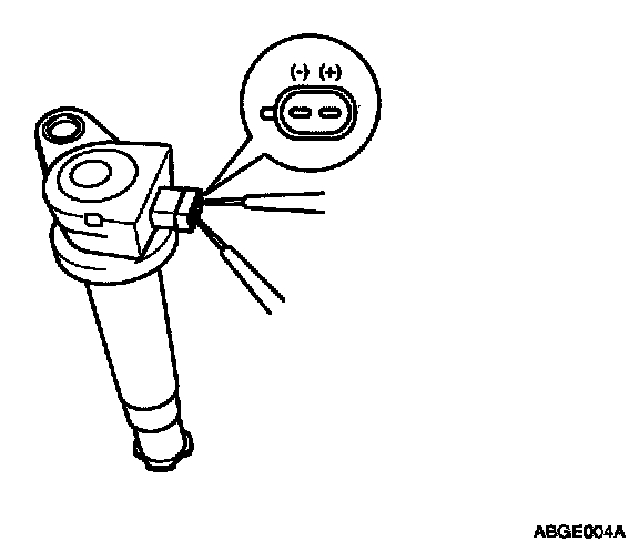 Measure the primary coil resistance between terminals (+) and (-).