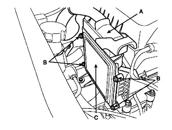 4. Unscrew the ECM mounting bolts (B) and remove the ECM from the air cleaner assembly.
