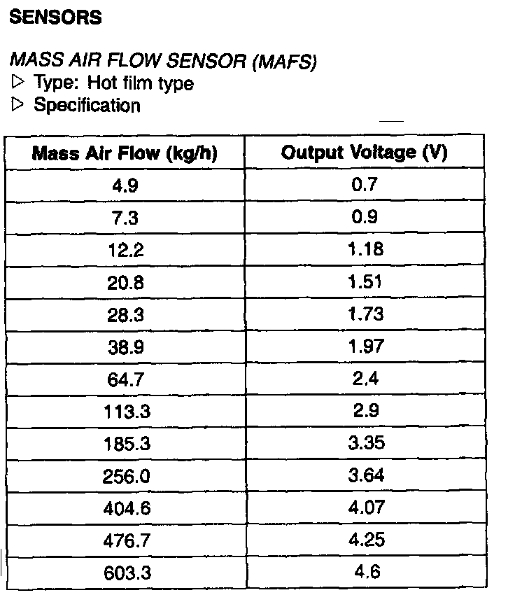 Mass Air Flow Sensor (MAFS) - Specification: