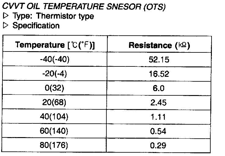 CVVT Oil Temperature Sensor (OTS) - Specification:
