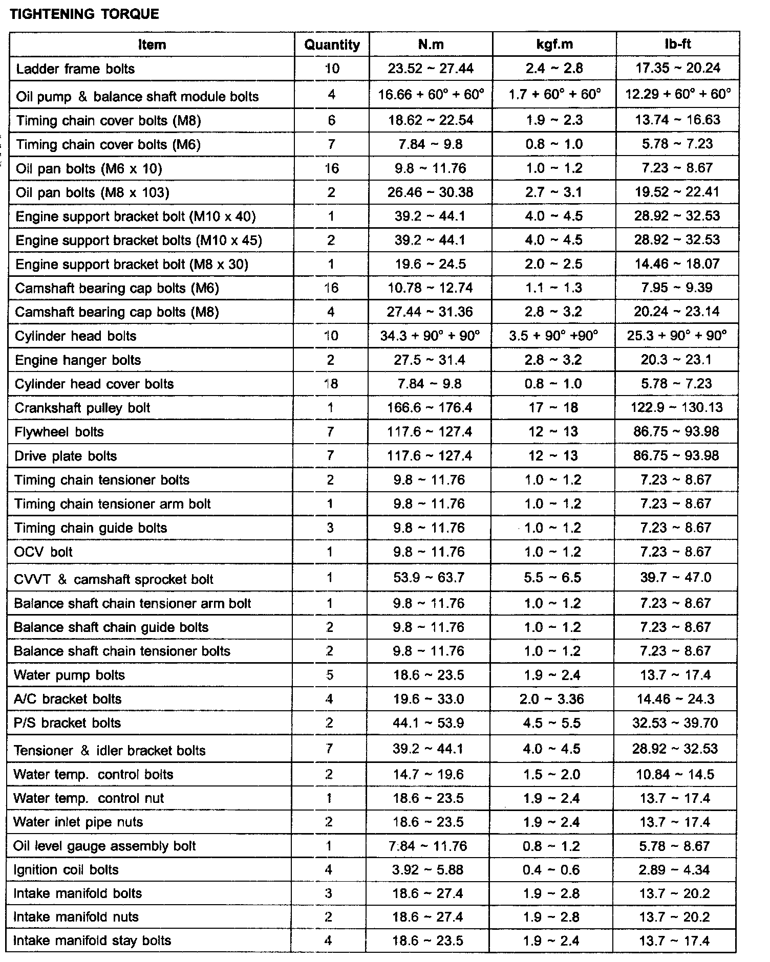 TIGHTENING TORQUE
