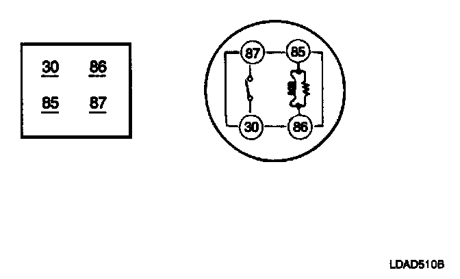 4. Apply 12 V to terminal 85 and ground to terminal 86. Check for continuity between terminals 30 and 87.