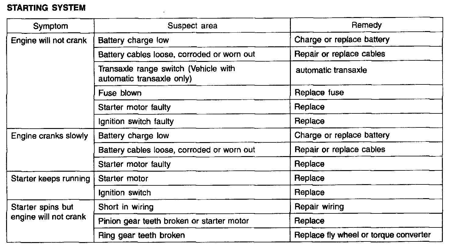 Starting System - Troubleshooting: