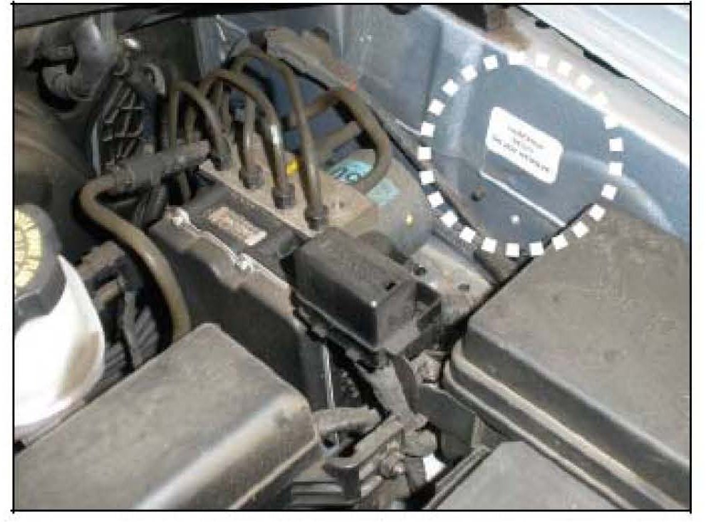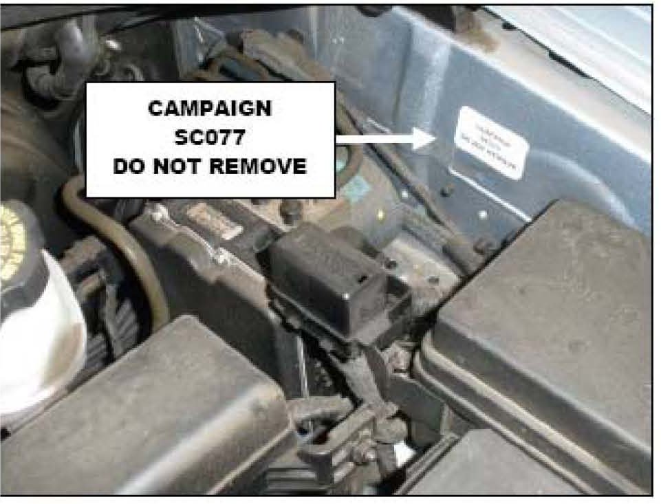 Open the hood and check for a campaign completion label on the driver's side inner fender as shown here.