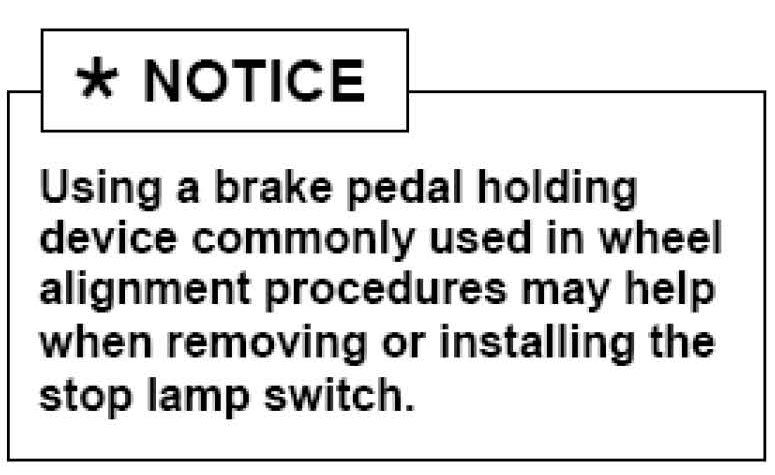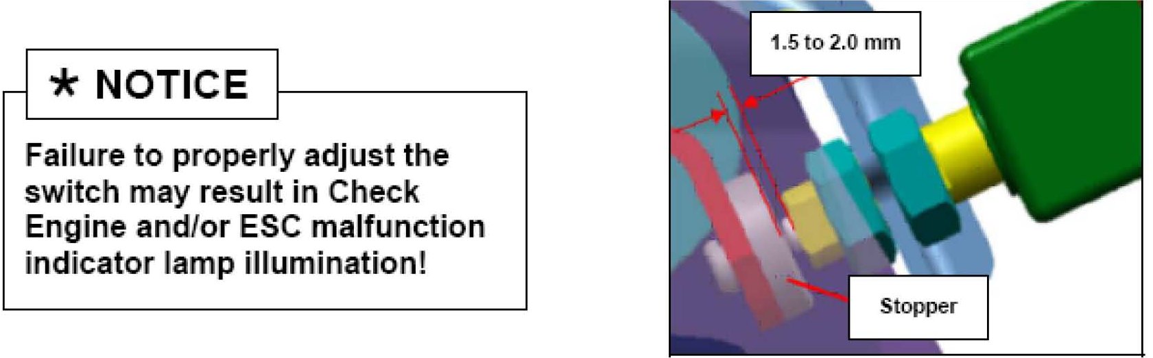 During installation of the new stop lamp switch be sure to adjust the clearance at the switch and brake pedal stopper to between 1.5 and 2.0 mm.