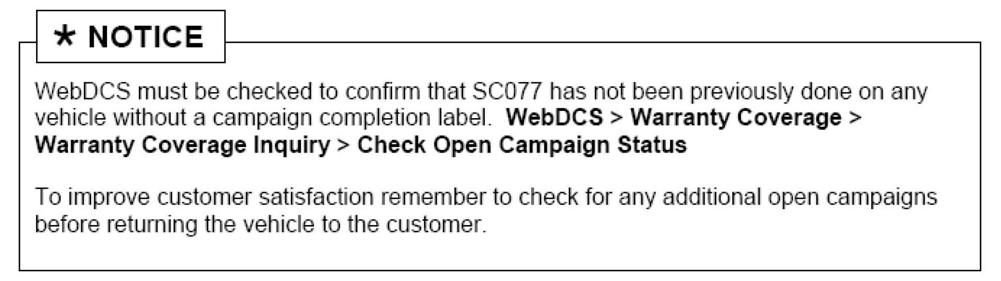 If label does not exist, VERIFY SC077 HAS NOT BEEN DONE on WebDCS before continuing to step two (2) of this procedure.