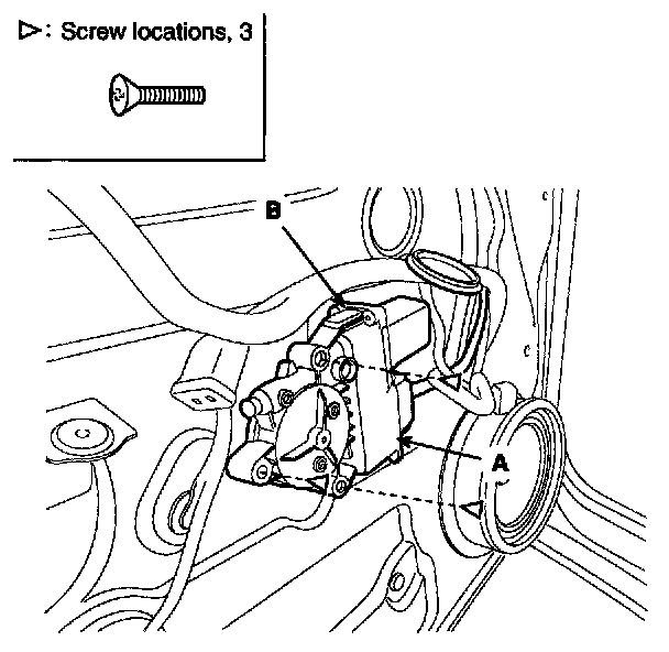 2. After disconnecting the connector (A), remove the power window motor (B).