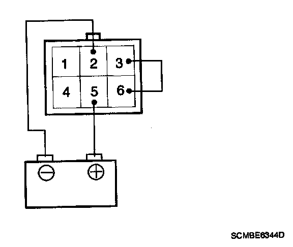 2. Attach the positive (+)lead from the battery to terminal 6 and the negative (-) lead to terminal 5.