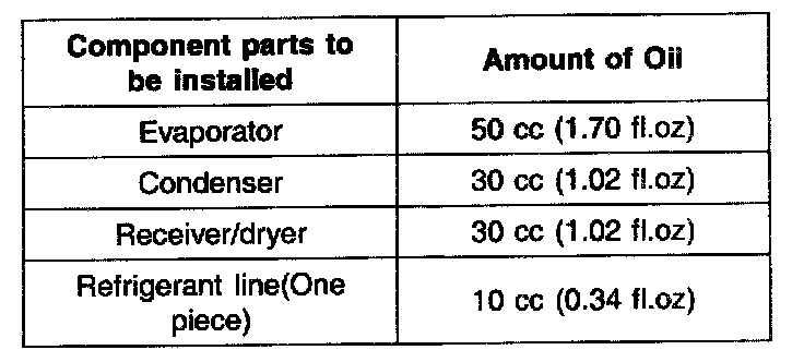 NOTE: Even if no oil is drained from the removed compressor, don't drain more than 50 cc from new compressor.