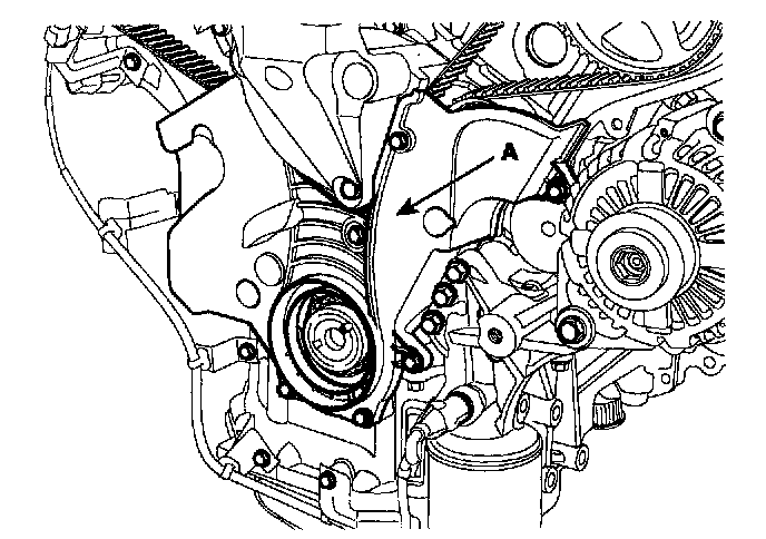 2) Install the auto tensioner(A) to the front case with the set-pin inserted.