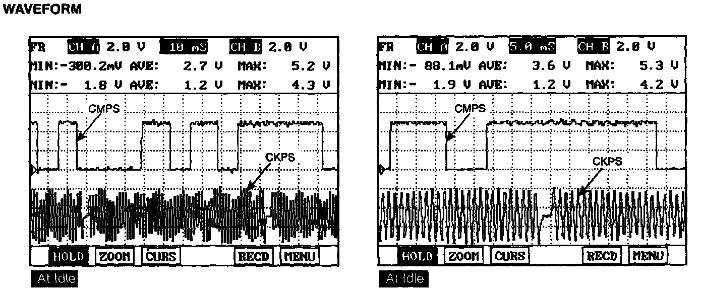 1. Check signal waveform of CMPS and CKPS using a scantool.