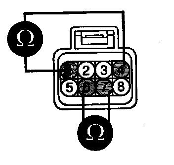1. Disconnect ETC module connector and measure resistance between ETC module terminals 5 and 8.