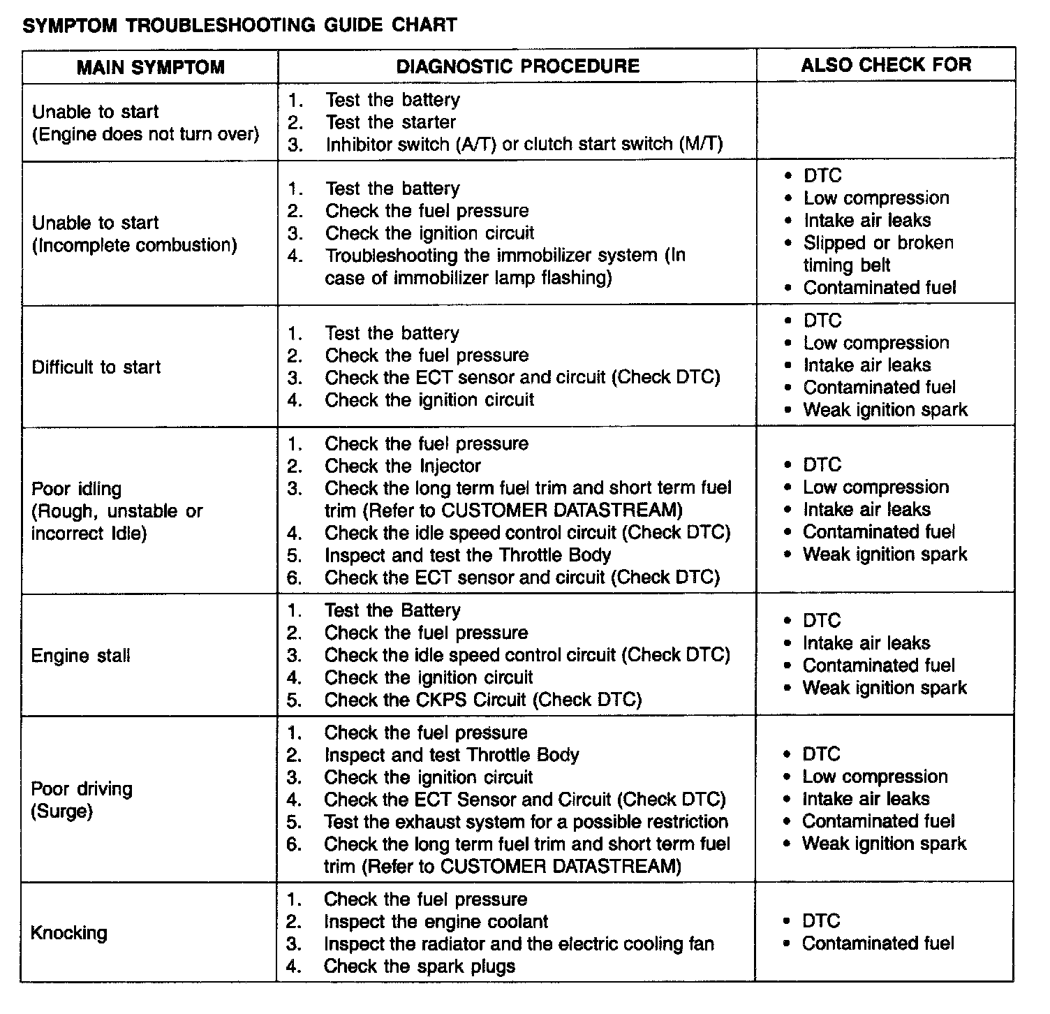 Symptom Troubleshooting Guide Chart - (Part 1):