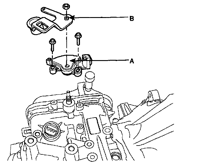 6. Remove the inhibitor switch(A) and manual control lever(B).