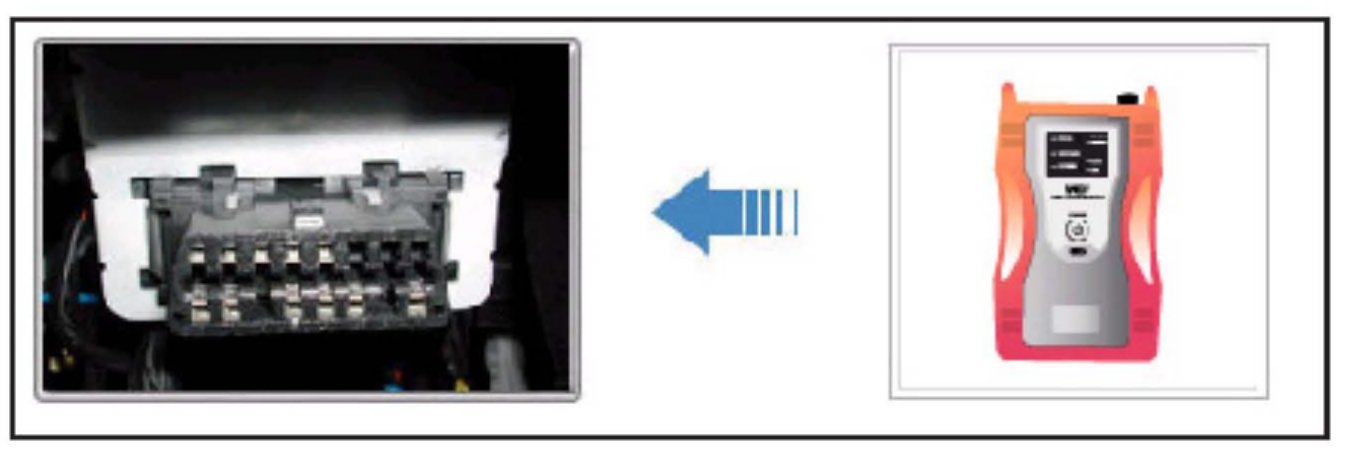 4. Connect the Main 16-pin DLC cable (GHDM - 241000) to the OBD-II connector, located under the driver's side of the instrument panel.