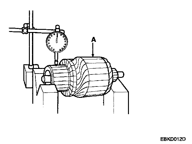 5. Measure the commutator (A) runout.