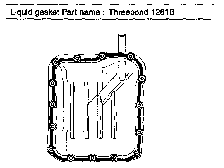 2. Continue to apply liquid gasket at application points at the oil pan with diameter 0.098in(2.5mm) thickness.