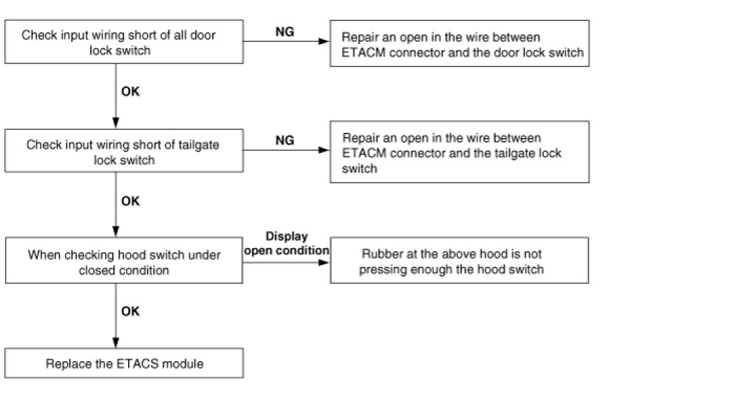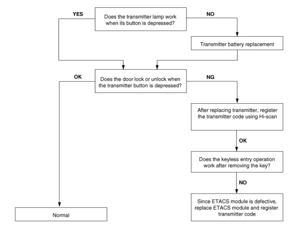 7. Central door lock function works, but keyless entry system does not work.