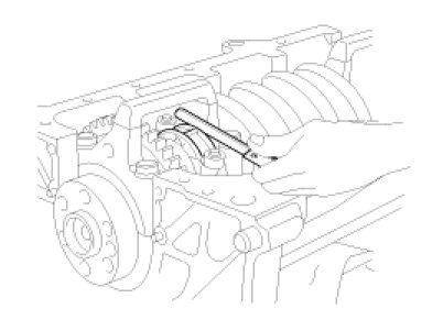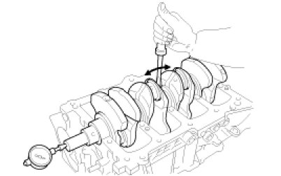 Using a dial indicator, measure the thrust clearance while prying the crankshaft back and forth with a screwdriver.