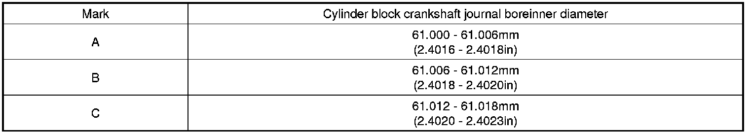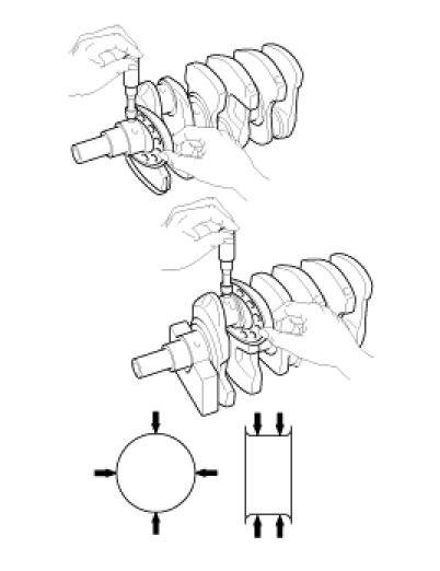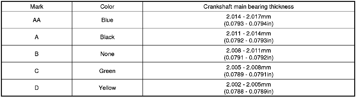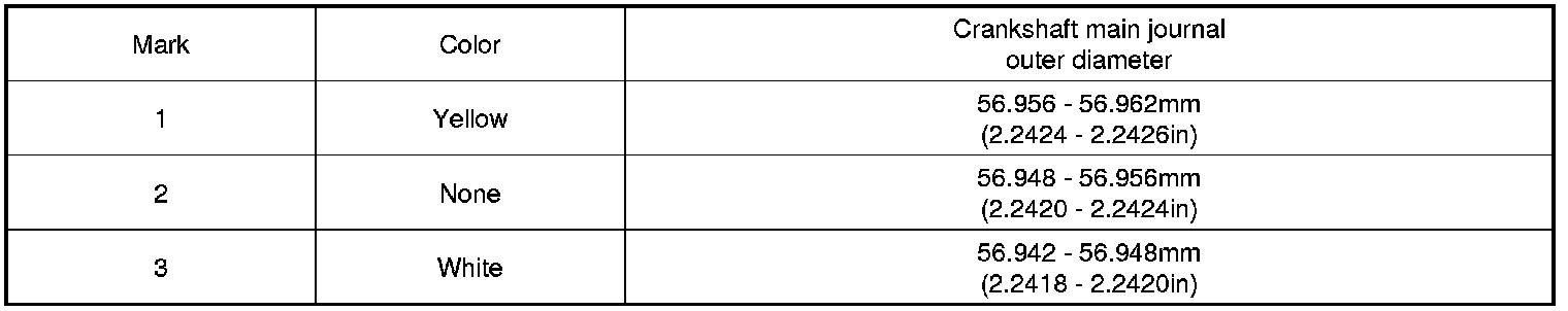 If the proper clearance cannot be obtained by using the appropriate larger or smaller bearings, replace the crankshaft and start over.