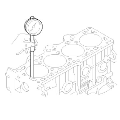 Using a cylinder bore gauge, measure the cylinder bore diameter at position in the thrust and axial direction.