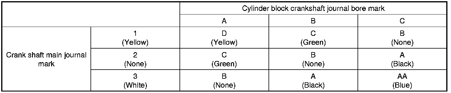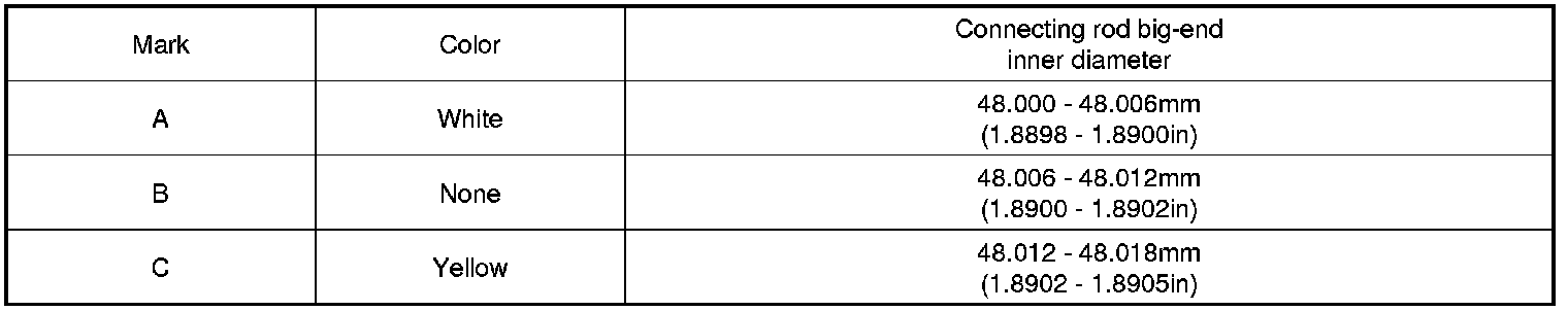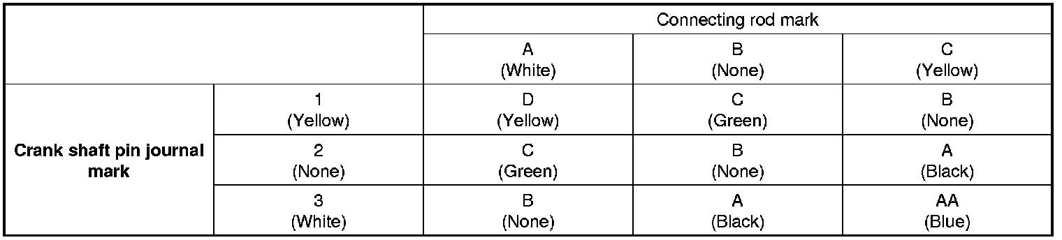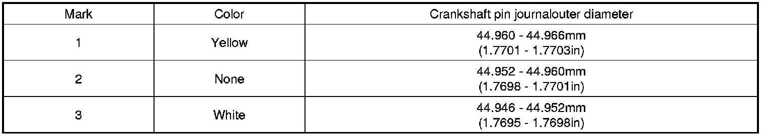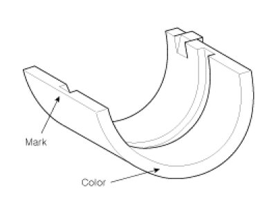 (9) If the plastigage measures too wide or too narrow, remove the upper and lower bearing and then install a new bearings with the same color mark.