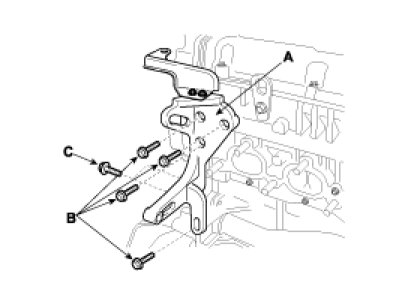 2. Install the power steering pump bracket(A) and bolts(B, C).
