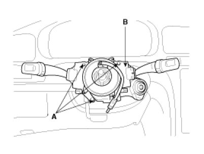 7. Remove the clock spring (A), then disconnect the connector(B) of multi-function switch.