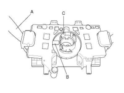 - Prior to installing the clock spring, align the mating mark and "NEUTRAL" position indicator of the clock spring, and, after turning the front wheels to the straight-ahead position, install the clock spring to the column switch. If the mating mark of the clock spring is not properly aligned, the steering wheel may not completely rotate during a turn, or the flat cable within the clock spring may be severed, obstructing normal operation of the SRS and possibly leading to serious injury to the vehicle's driver. To inspect the clock spring, refer to the Restraints section.