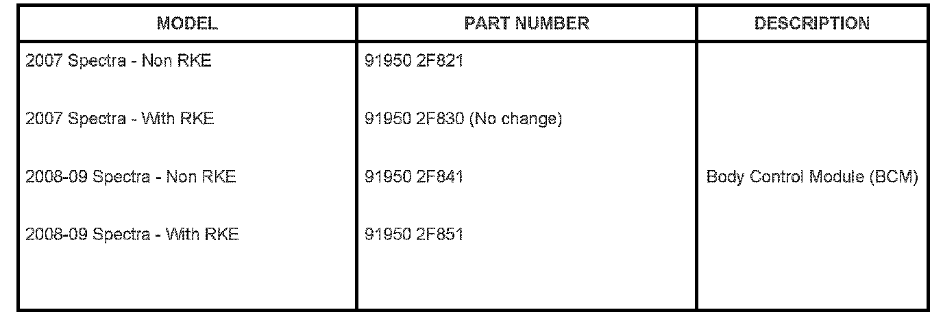 The Body Control Module (BCM) logic has been improved to correct this concern as of 8/8/2008. If a BCM has been replaced on the vehicle prior to this date, even if it was P/N 91950 2F830, the BCM will still require replacement with the newest level part. Locate the label shown below which is affixed to the BCM. Compare the first 3 numbers in the lot number and the third to last digit for the year to determine weather the BCM was manufactured before or after countermeasure.