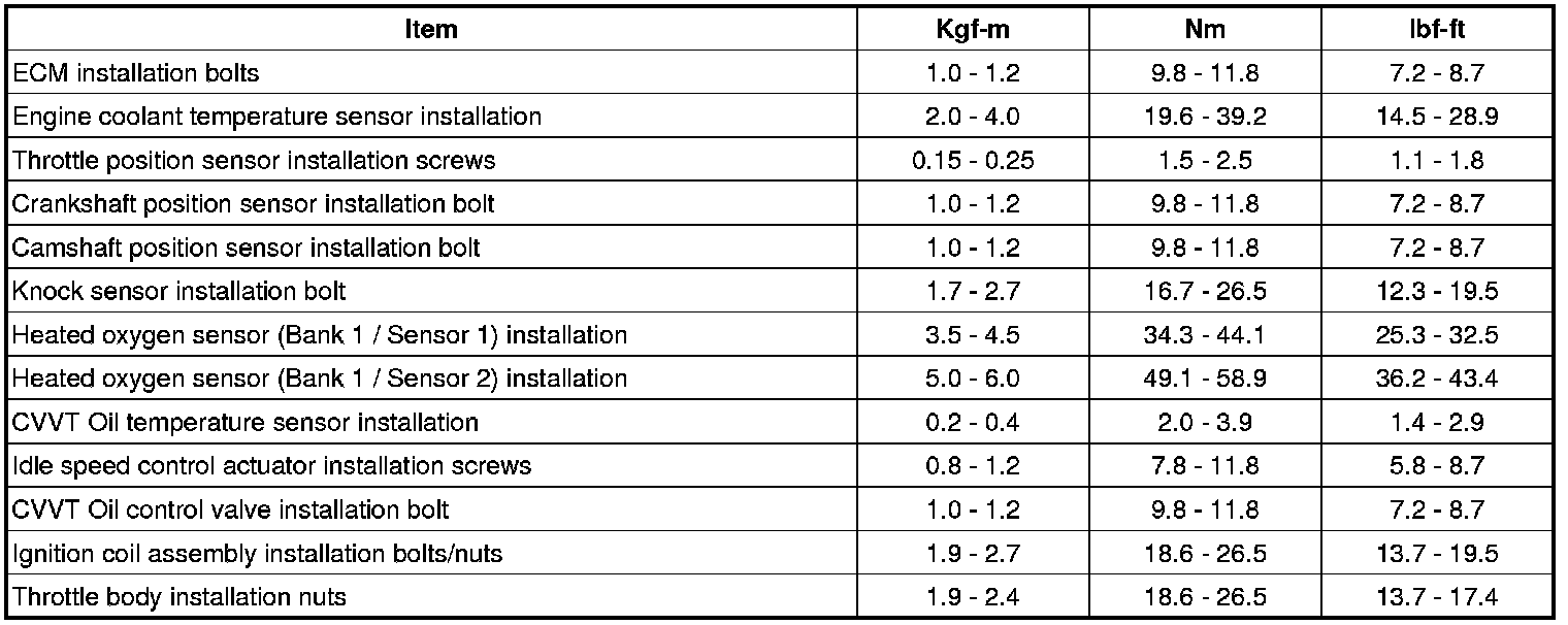 TIGHTENING TORQUES