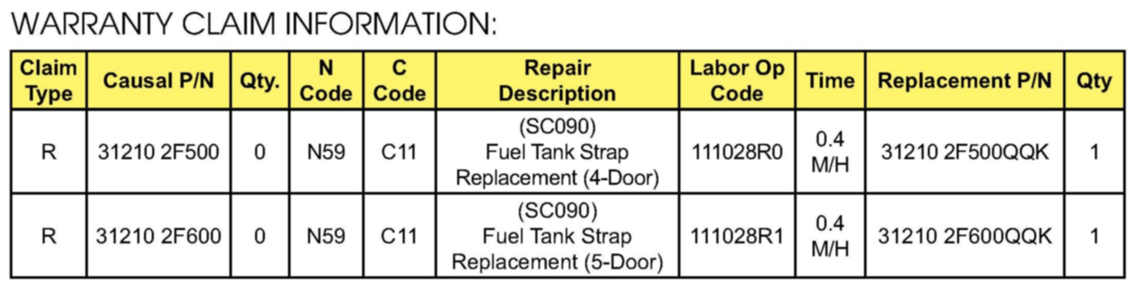 SUBJECT: SPECTRA (LD) FUEL TANK STRAP REPLACEMENT (SC090)