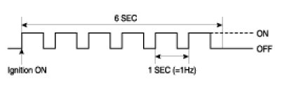 The SRSCM will flash warning lamp at 1 Hz (50% duty cycle) if there are no active faults and no historic faults. If a fault is qualified during the 1 Hz flashing, the SRSCM will finish the 6 seconds flash, turn off the warning lamp for 2 seconds and then turn the warning lamp off.