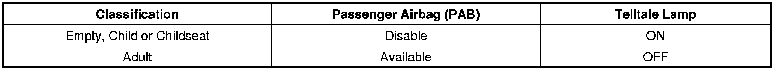 The Telltale Lamp indicates that the Passenger Airbag (PAB) is available or disabled. If the passenger seat is empty or occupied with child (or child seat), the Passenger Airbag is disabled and the Telltale Lamp is turned ON to inform the driver that the PAB is disabled.