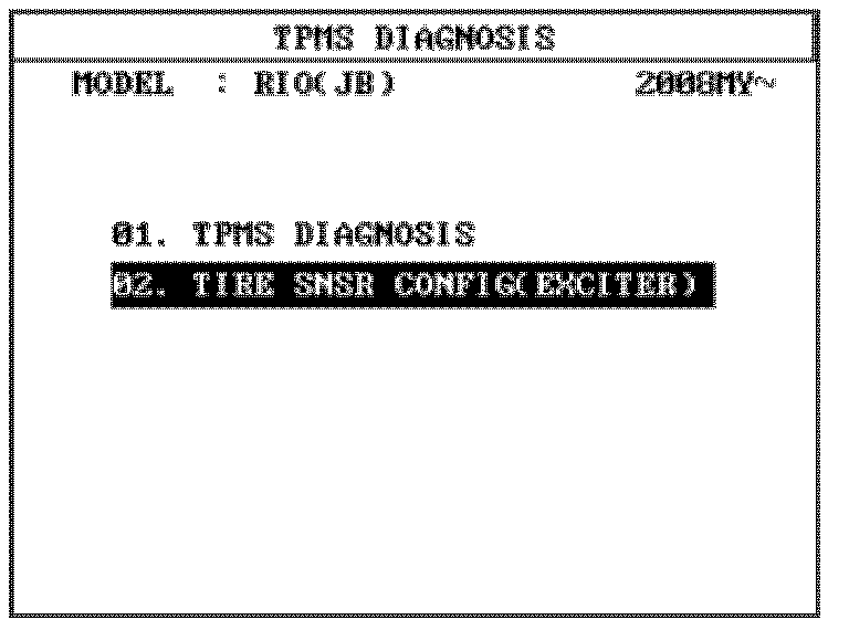 Select 02. TIRE SNSR CONFIG (EXCITER) from the TMPS DIAGNOSIS menu.