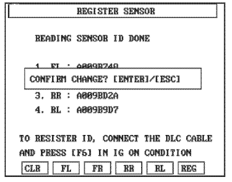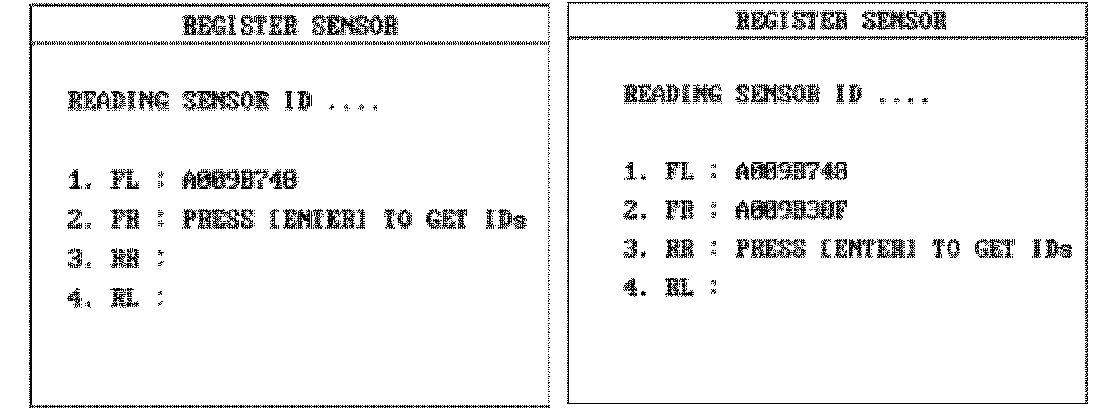 3. Press ENTER. The sensor ID for the LF wheel will be read and displayed.