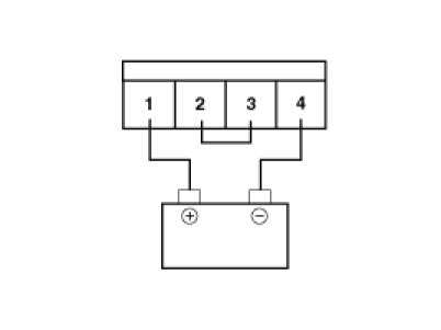 4. Connect the positive (+) lead from the battery to terminal 1 and the negative (-) lead to terminal 4.
