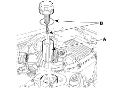 3. Wait for 5 minutes after loosening the oil filter cap by turning it counterclockwise with SST(09263-3C100) to drain well the oil in the oil filter.