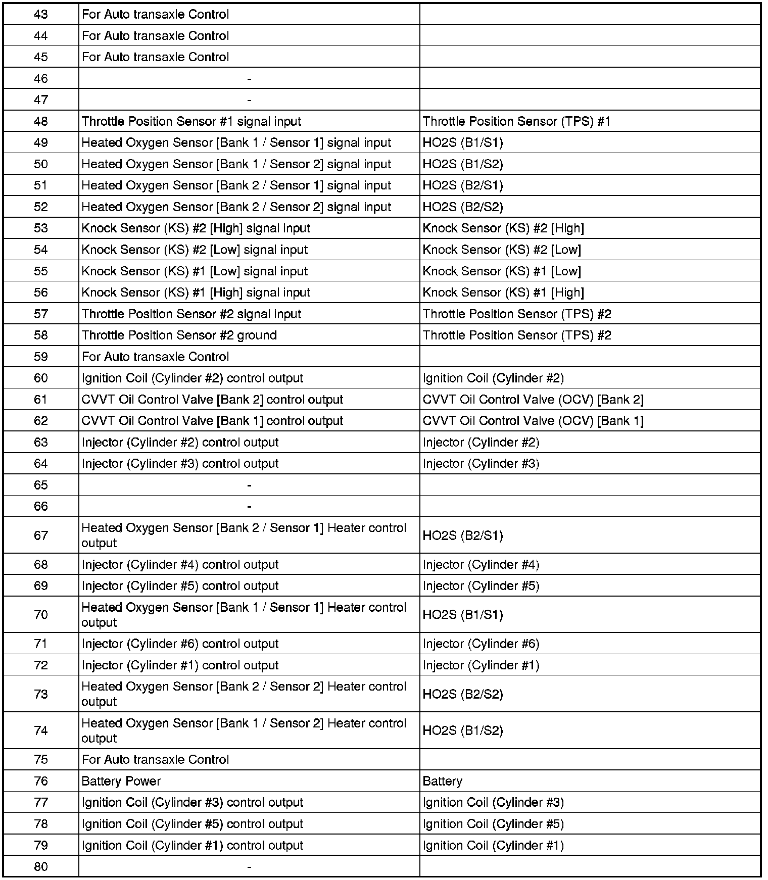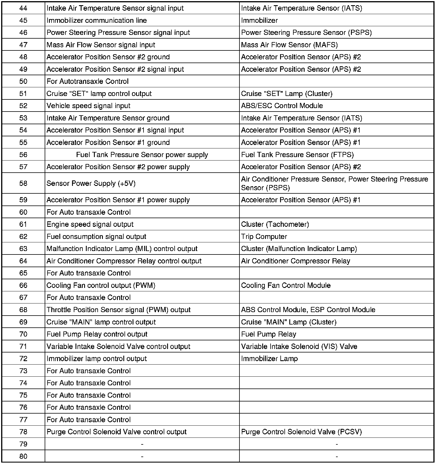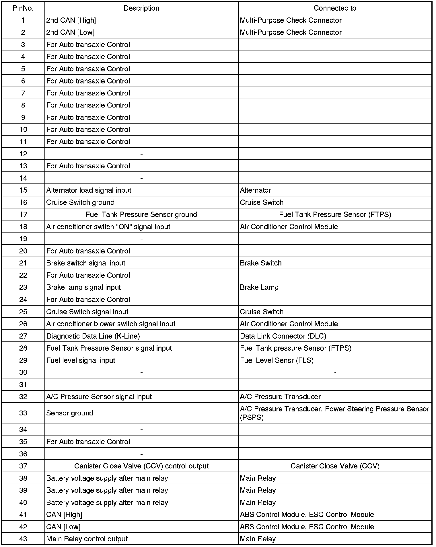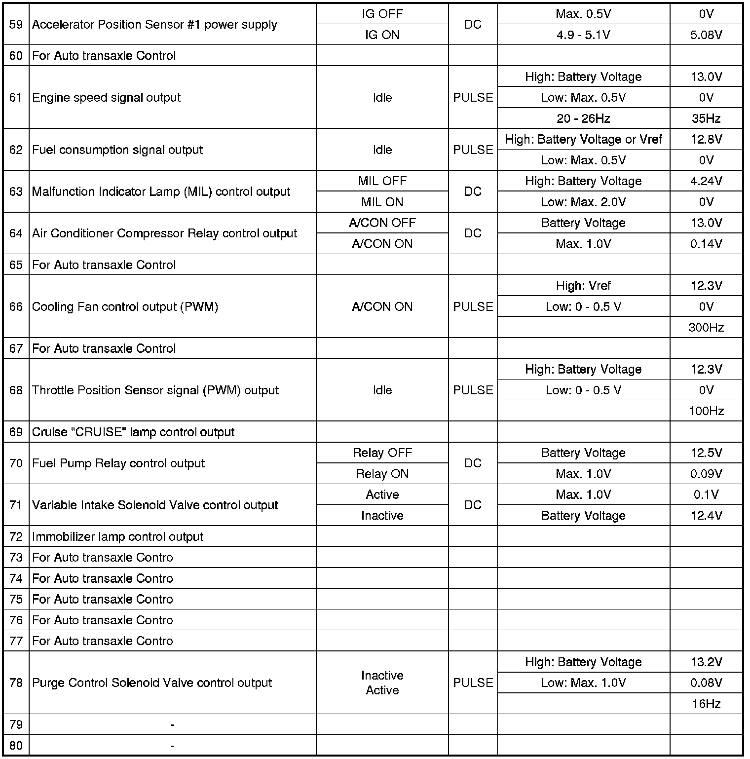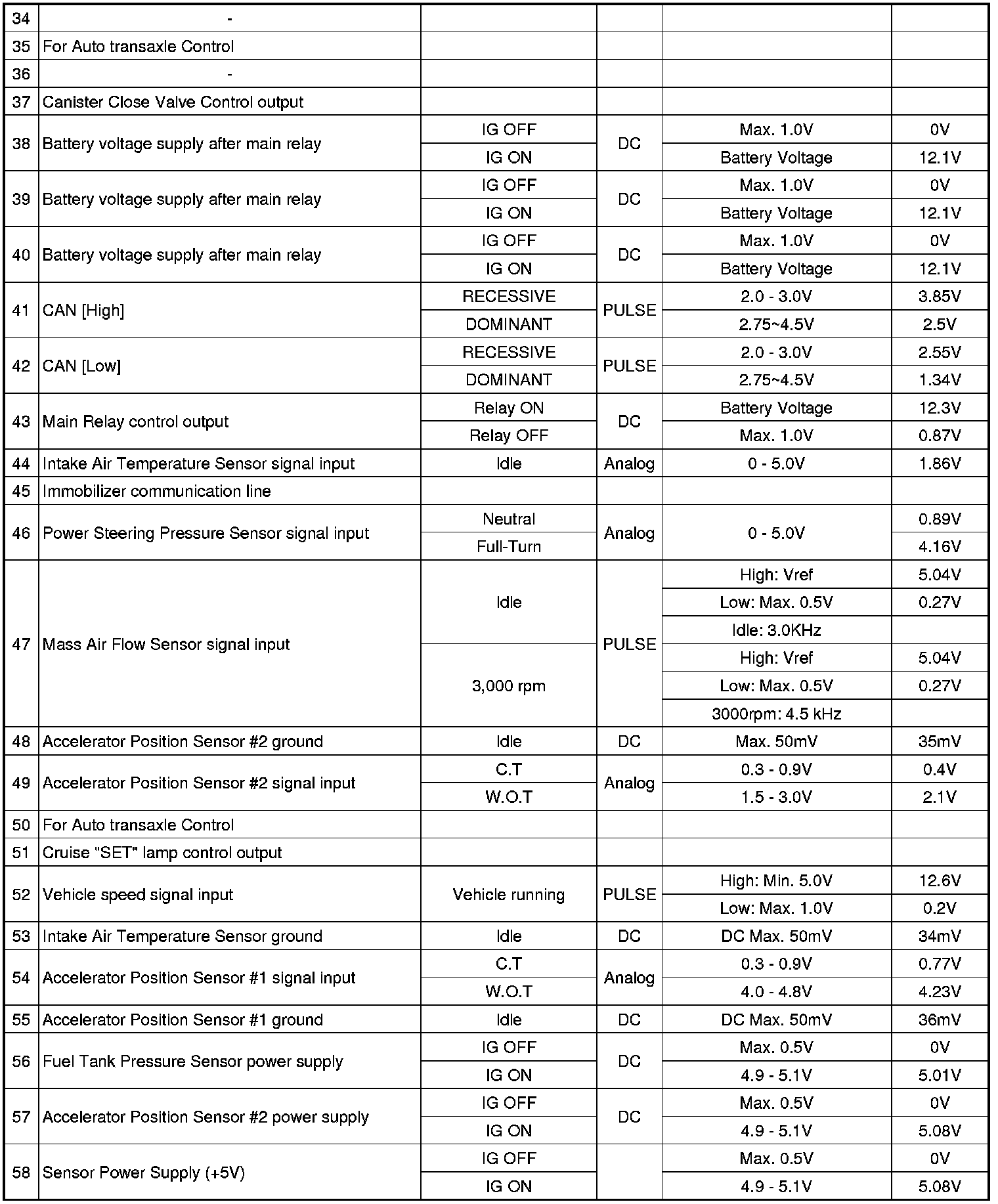 PCM TERMINAL INPUT/OUTPUT SIGNAL