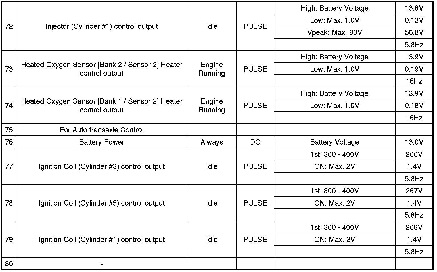 Pinout Values and Diagnostic Parameters