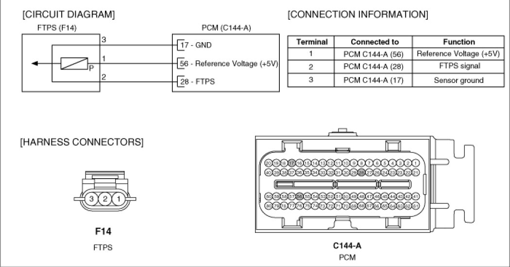 The evaporative emission control system prevents hydrocarbon vapors from escaping from the fuel tank into the atmosphere where they could form photochemical smog. Gasoline vapors are collected in the charcoal canister. The Fuel Tank Pressure Sensor (FTPS) is installed on fuel pump assembly and is an integral part of the evaporative monitoring system. The PCM monitors the FTPS signal to detect vacuum decay and excess vacuum. The FTPS measures the difference between the air pressure inside the fuel tank and outside air pressure to check the purge control solenoid valve operation and for leak detection in the evaporative emission control system by monitoring pressure and vacuum levels in the fuel tank during the purge control solenoid valve operating cycles.