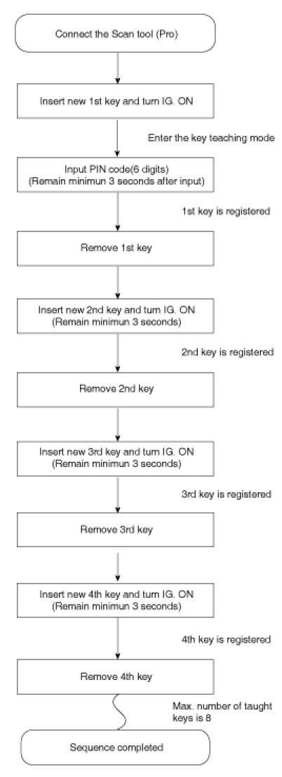 If the PCM(ECM) status and the key status do not match for teaching of keys, the tester procedure will be stopped and a specific fault code will be stored at PCM(ECM).