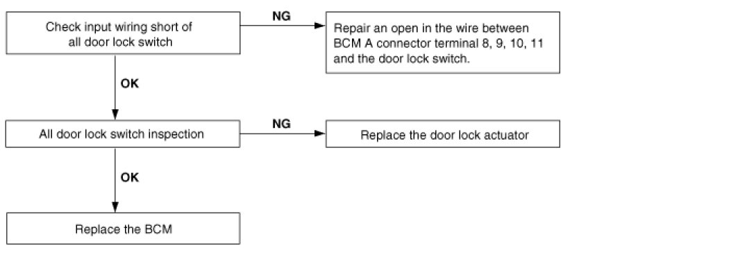 7. Central door lock function works, but keyless entry system does not work.