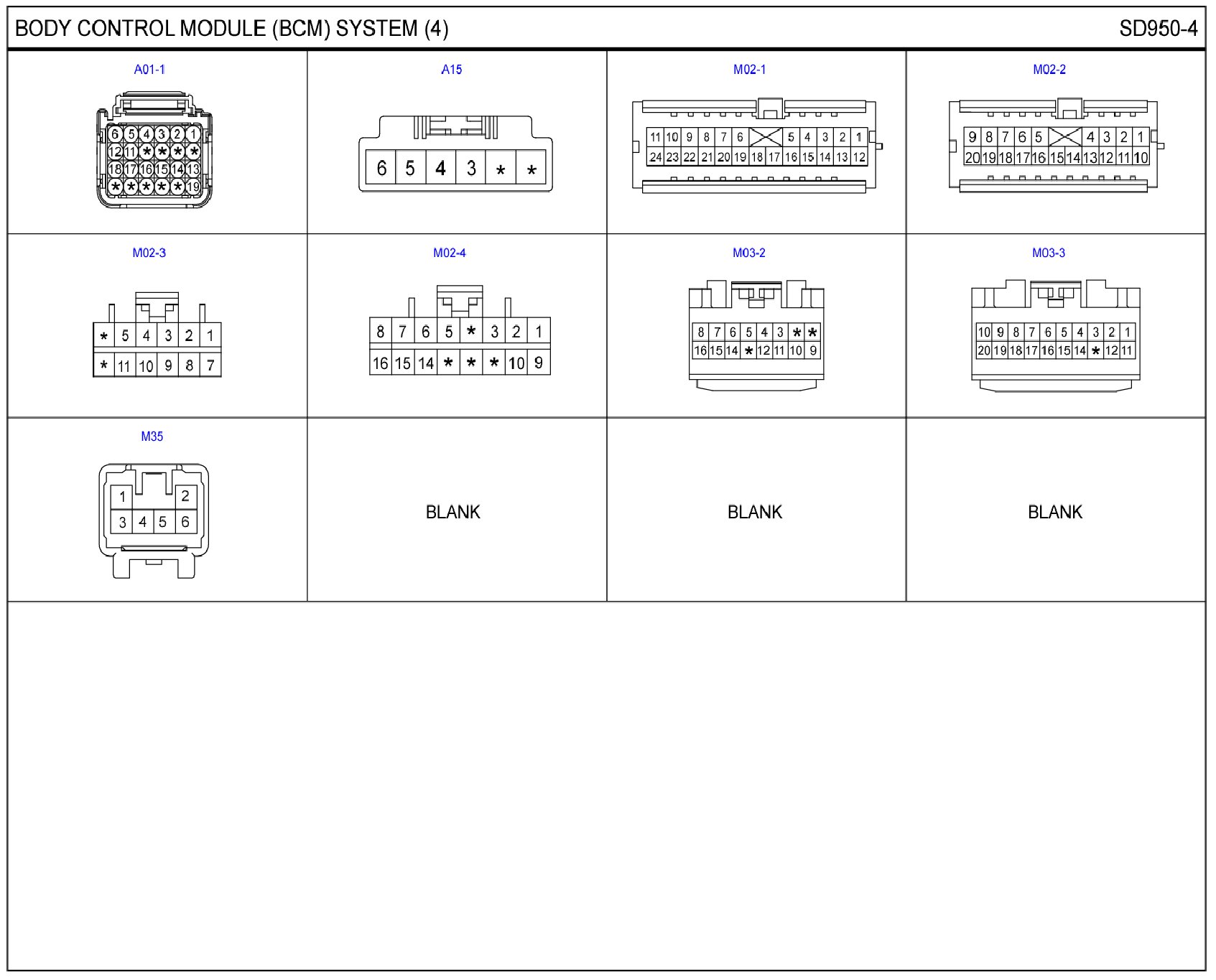Body Control Module (BCM) System Connector Pin Outs:
