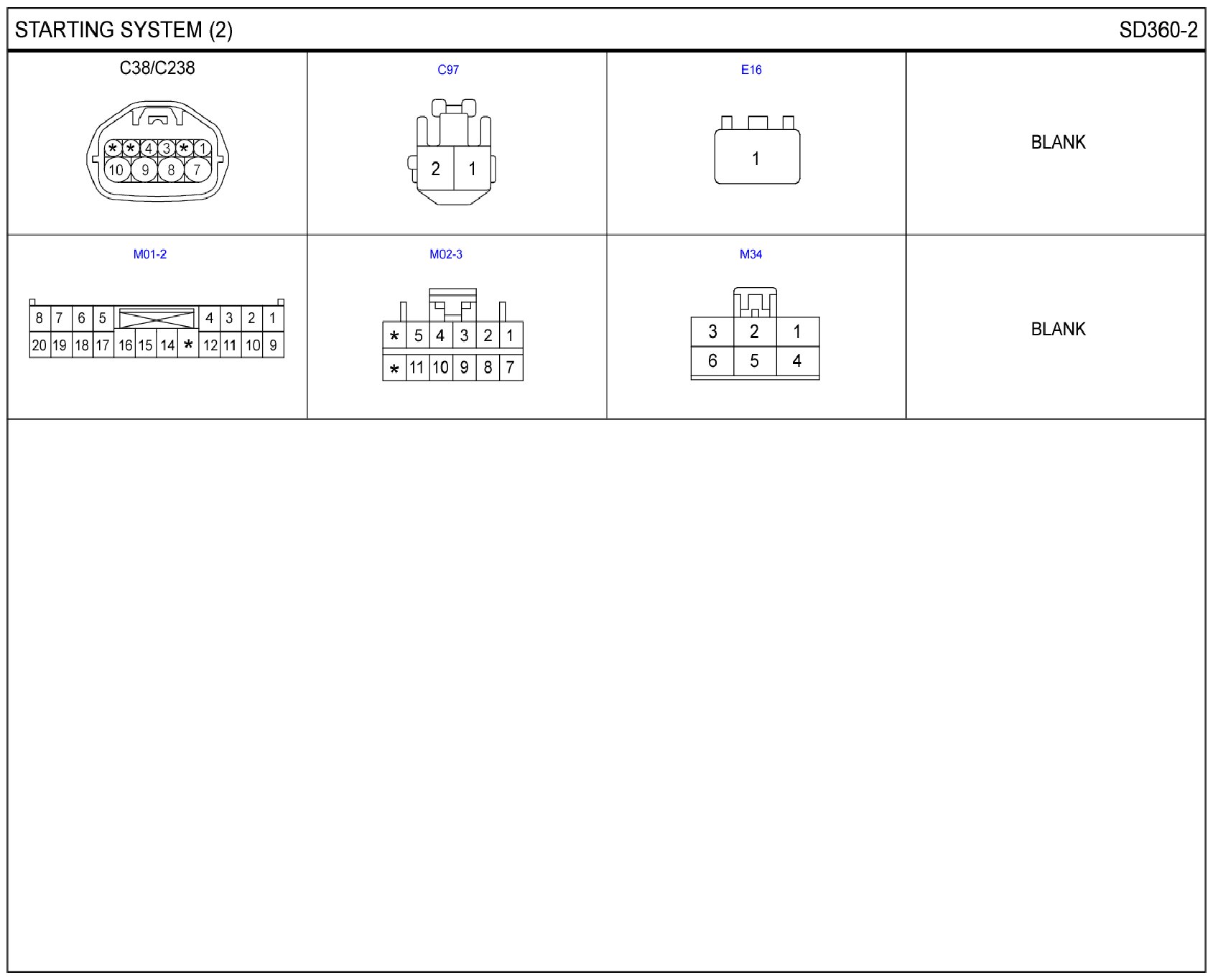 Starting System Connector Pin Outs: