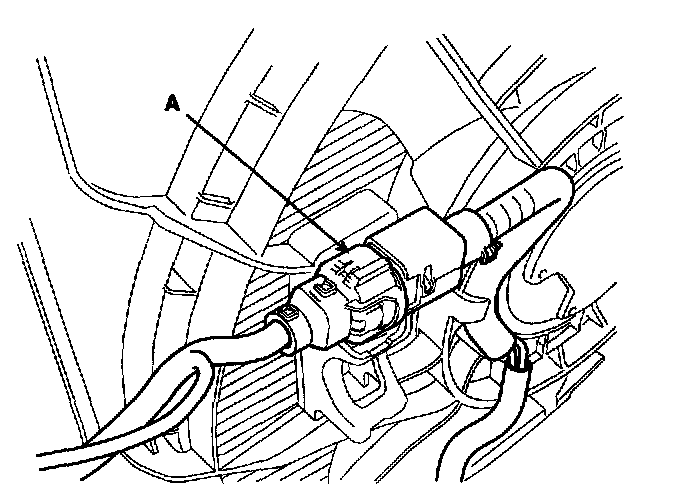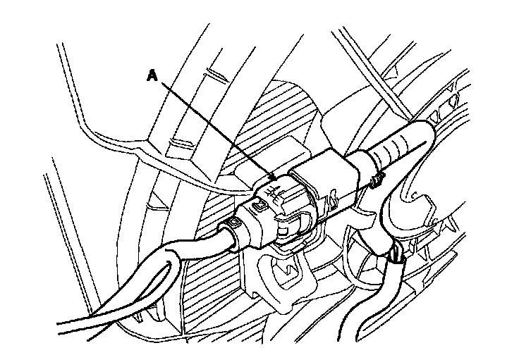 6. Disconnect the cooling fan motor connector(A).