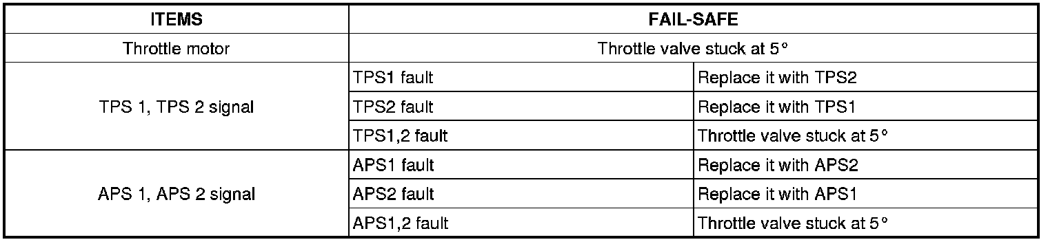 ** When throttle valve is stuck at 5° engine speed is limited at below 1500rpm and vehicle speed at maximum 40 - 50 km/h (25 - 31 mile/h).