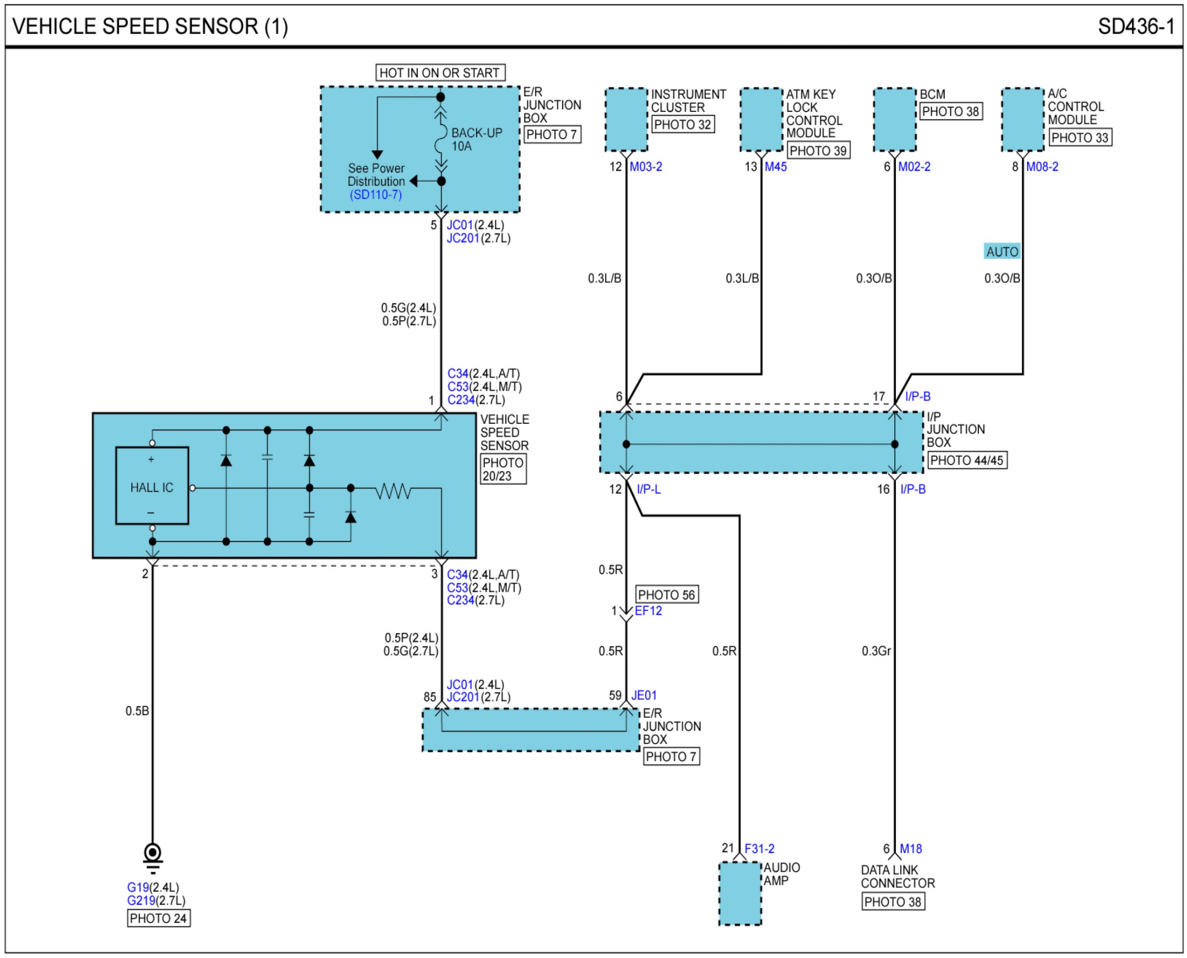 Vehicle Speed Sensor (Built on or After 7/18/2007) Connector Pin Outs:
